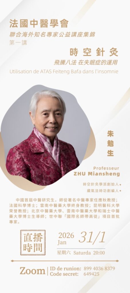 En 2026, l’association UNIMTC invite plusieurs grands médecins chinois spécialisés en Médecine Traditionnelle Chinoise à donner des conférences en visioconférence, avec traduction franco-chinoise.